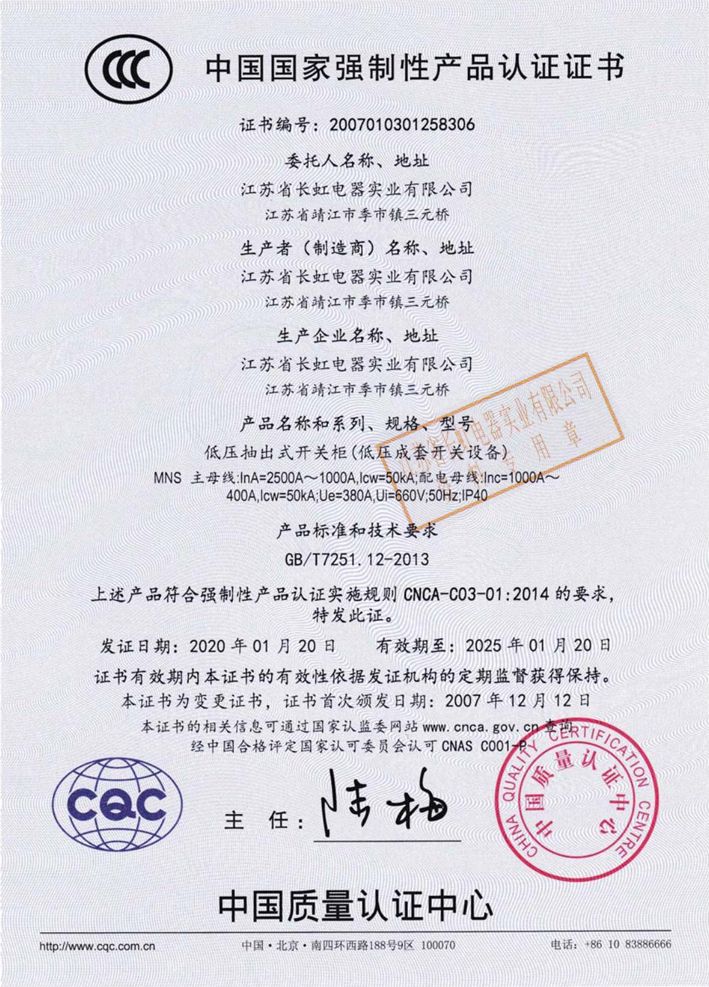 產(chǎn)品均已通過了由國(guó)家權(quán)威機(jī)構(gòu)進(jìn)行的型式試驗(yàn),并于2003年通過了CCC強(qiáng)制性產(chǎn)品認(rèn)證。